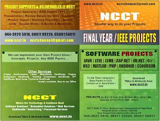 Final Year Projects, IEEE Projects, Student Projects, Embedded Projects, Software Projects. Collection of Computer Software Projects / Embedded Systems Projects for Students. A Wide Variety of Final Year Projects and Ideas, Free Project Abstracts in Software & Embedded Systems, Free Project Report, Free Source Code - Largest collection of Project downloads with source code, IEEE Projects Free download. IEEE Final Year Projects in Java, DotNET, NS2, Matlab, Embedded Systems, VLSI, DSP, Matlab